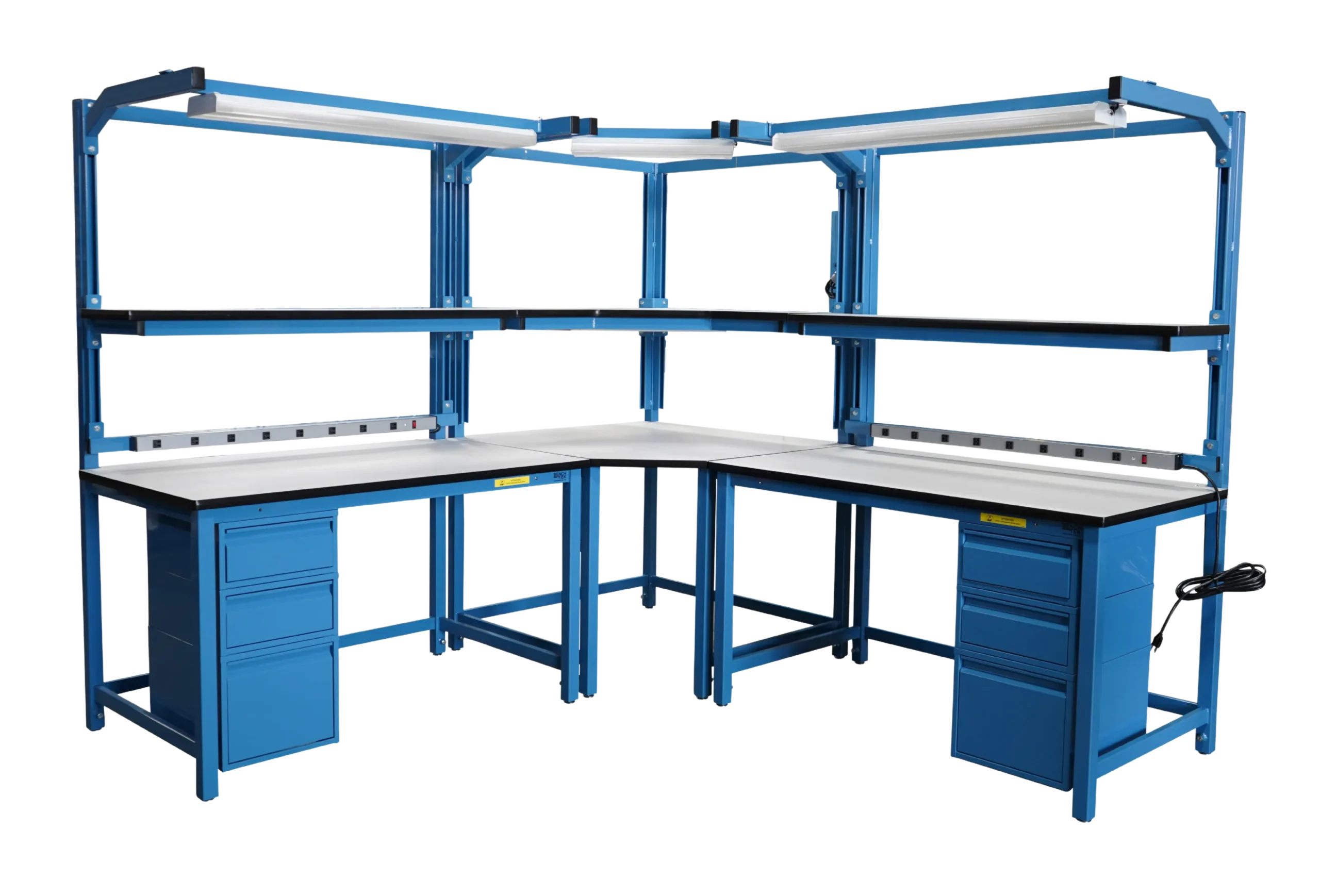 - Heavy-duty workbenches for fabrication and assembly processes
